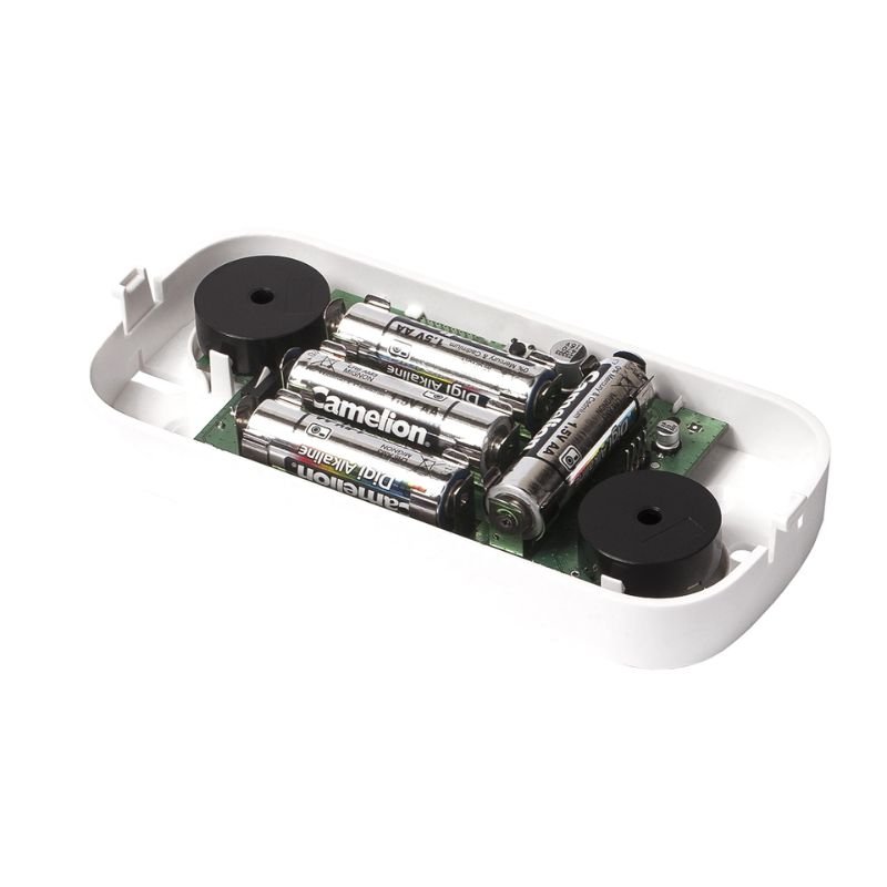 Wireless indoor siren with built-in siren speakers and LED indicators operating with ELDES wireless alarm systems, powered by (4xAA) batteries for up to 18 months.